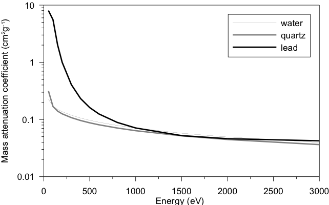 When sediments or soils are considered, the medium consists of a mixture of elements. The mass-attenuation coefficient for a mixture of elements can be obtained by: